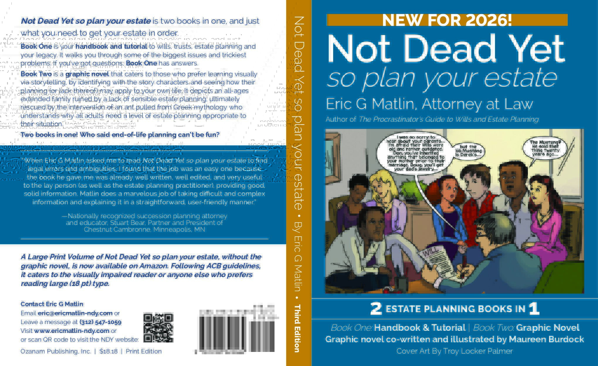Uniquely, NDY is two books in one: The front 2/3rds text and tutorial portion of NDY is a legal roadmap and tutorial to estate planning presented in clear bites with minimal legalese. The back 1/3rd is a graphic novel that caters to anyone who prefers learning visually by identifying with the characters and relating how the characters’ planning (or lack thereof) may apply to their own lives.